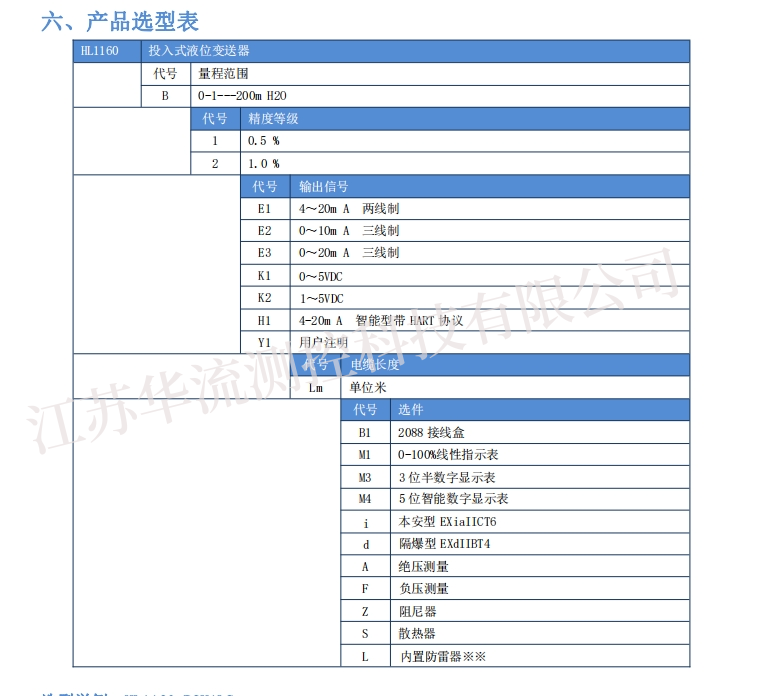 HL1160 投(tóu)入式液(ye)位變送(song)器(液體(ti)靜壓式(shi),噜🚩噜色wwwcom🌈用于普(pǔ)通液體(tǐ))采用高(gāo)性能的(de)擴散矽(xī)壓阻式(shì)壓力傳(chuan)感器作(zuò)爲測量(liang)元件,經(jing)過高可(kě)靠性的(de)放大處(chù)理電路(lù)及精密(mi)溫度補(bu)償,将被(bei)測介質(zhi)的表壓(yā)或絕🌈壓(ya)轉換爲(wèi)标準的(de)電壓或(huò)電流信(xin)号。本産(chǎn)品體積(ji)小巧,使(shǐ)用安裝(zhuāng)方便,直(zhi)接投入(rù)水中💘即(jí)可測量(liang)出變送(sòng)器末端(duān)到液面(miàn)的液位(wèi)高度。